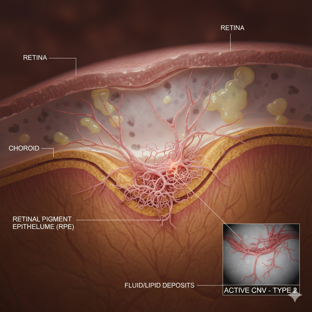 - Location Matters: In conditions like Choroidal Neovascularization (CNV), knowing exactly where abnormal vessels are growing—either under or through protective layers of the eye—determines how hard they are to treat.